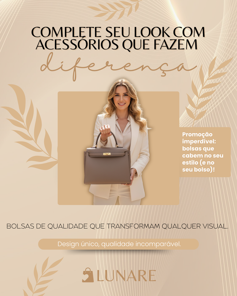 A Lunare nasceu para celebrar o estilo e a essência da mulher moderna. Unimos elegância, qualidade e versatilidade em cada detalhe, criando bolsas que acompanham você em todos os momentos — do dia a dia às ocasiões especiais.